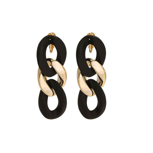 Step into the world of bold contrasts with Miyabi Grace's striking Chain Link Clip Earrings. Merging the audaciousness of matte black links with the rich luster of gold accents, these earrings are designed to captivate. They're a testament to bold fashion statements, requiring no piercings to exude confidence. Perfect for those who seek to make an impression at avant-garde gatherings or to stand out in the urban jungle.