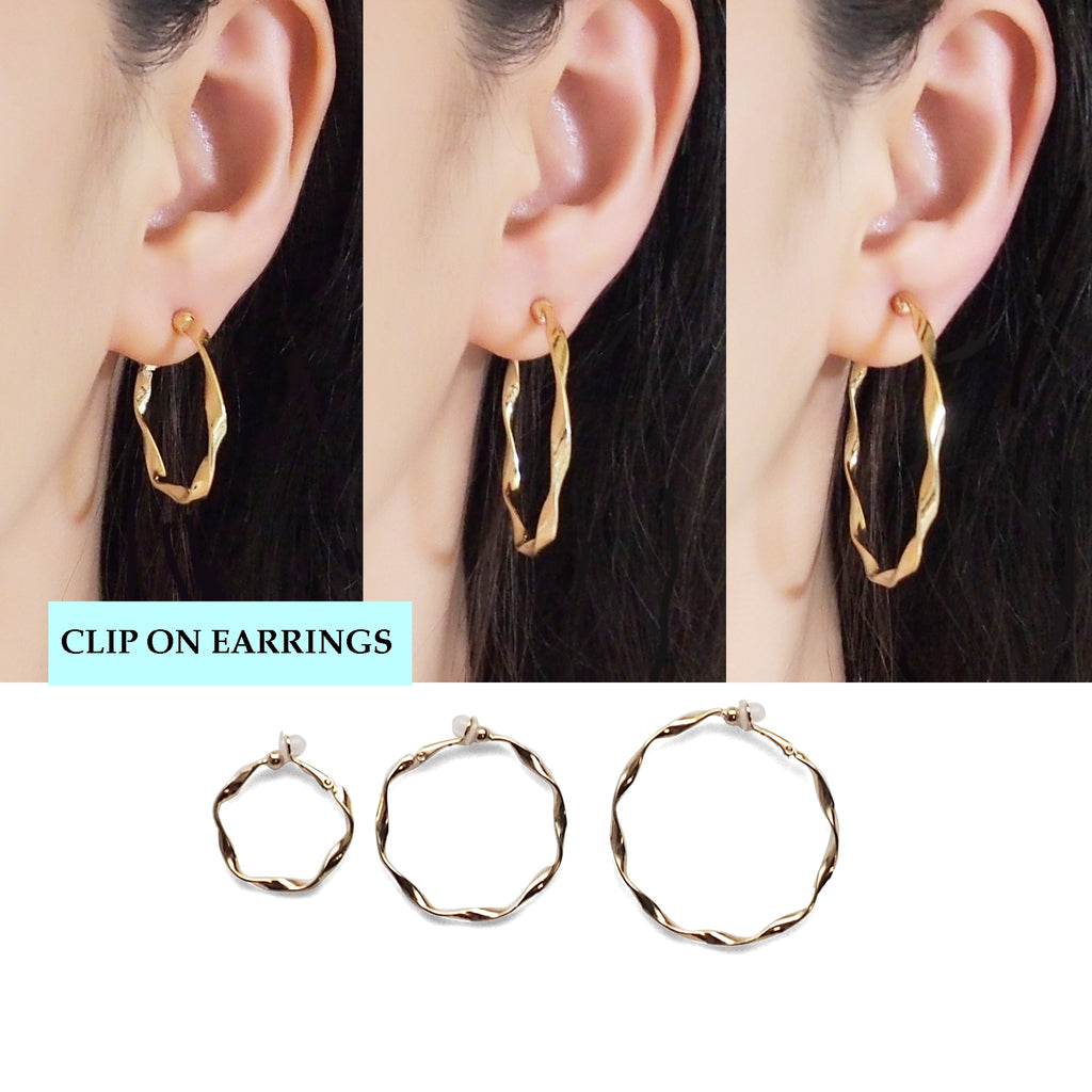 ✨These are modern and trendy clip on hoop earrings. Twisted hoops are unique and stylish! They go with everyday casual fashion to dressing-up style fashion. They are versatile! The soft silicon cushion was set at the end of the clip on earrings and these ease the pain from the pinching. If you are looking for impressive clip on hoop earrings, these are the one for you. Why don’t you add these modern clip on earrings to your wardrobes?